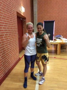 Comunque bando alle ciance venerdì al mio arrivo in fiera mi sono allenata con Carli con un pò di lavoro funzionale con la palla medica alternata alle figure e devo dire che la sua vena sadica si è gonfiata immediatamente e mi ha tartassata per bene considerando che non potevo di certo mollare con la gente che mi guardava incuriosita... Il sabato e domenica mi sono affidata a quella forza della natura di Max Reppucci ,inesauribile, più del coniglietto delle pile duracell e che per otto ore consecutive ha fatto fare figure agli atleti presenti allo stand ( i fratelli Petrosian, due stelle emergenti nel K1 bielorussi, un peso massimo , Bundu e tutti quelli presi da sotto il ring ed incitati a provare...) E' stato divertente perchè faceva lavorare con i bastoni e i guanti da passata su azioni velocissime e lunghissime che in quel caos era impossibile ricordare ma un modo divertente di lavorare sulla tecnica sopra il ring...sabato pomeriggio ho improvvisato poi un pò di sparring, con la mia mitica Benedetta che gli impietosi amici ormai chiamano bonariamente donna sacco e altre due ragazze intortate in giornata mentre facevano le figure e così 2 o 3 riprese a testa ed un altro allenamento è andato!!!!