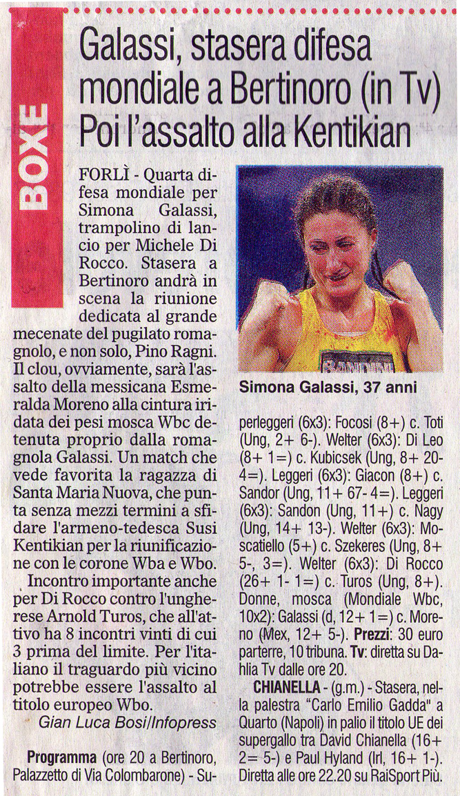 | Galassi, stasera difesa mondiale a Bertinoro. Poi l'assalto alla Kentikian |