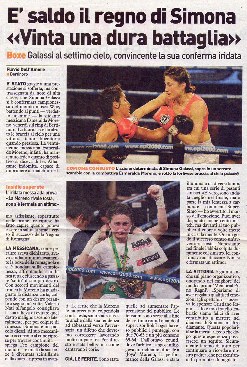 | É saldo il regno di Simona « Vinta una dura battaglia » |